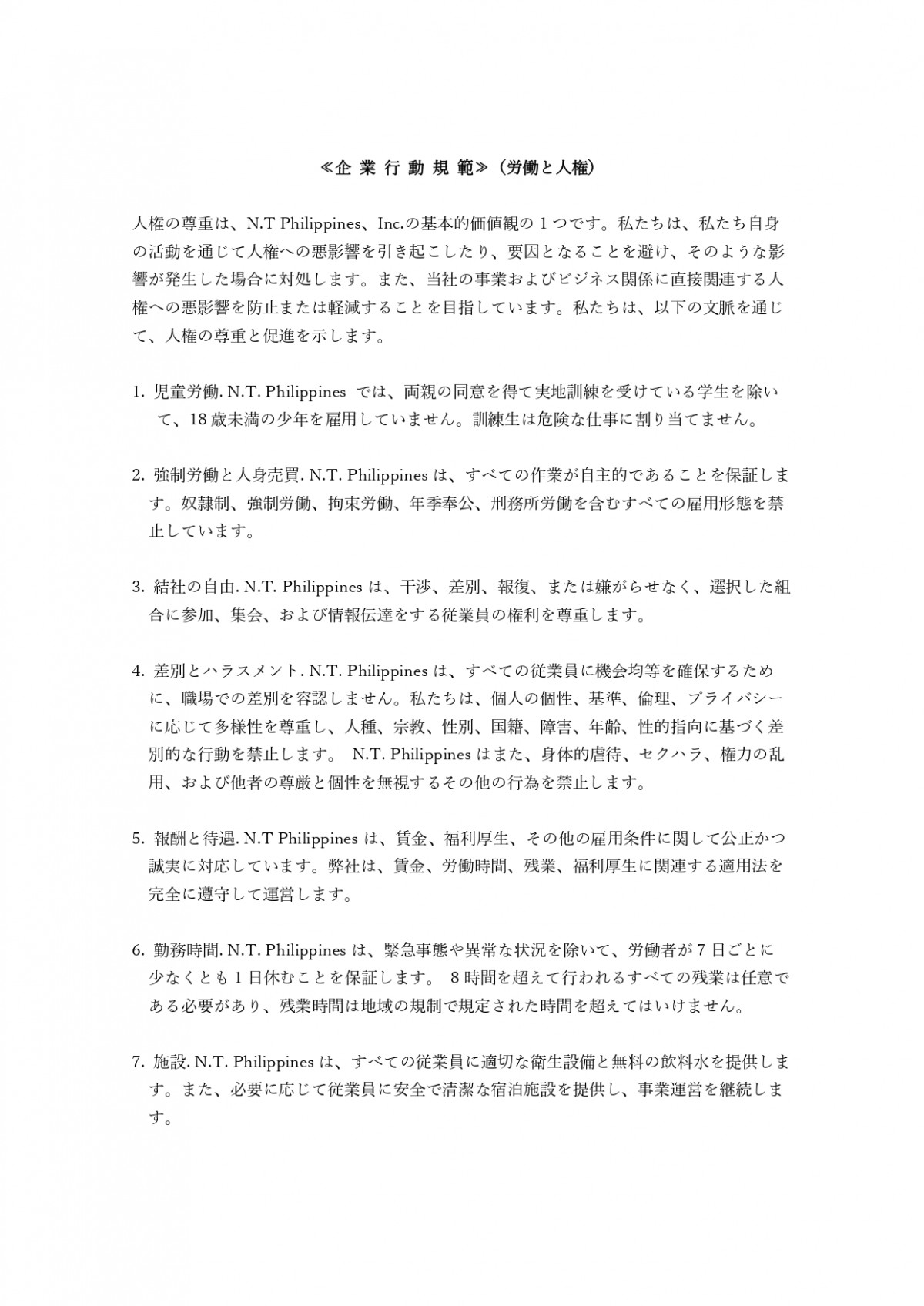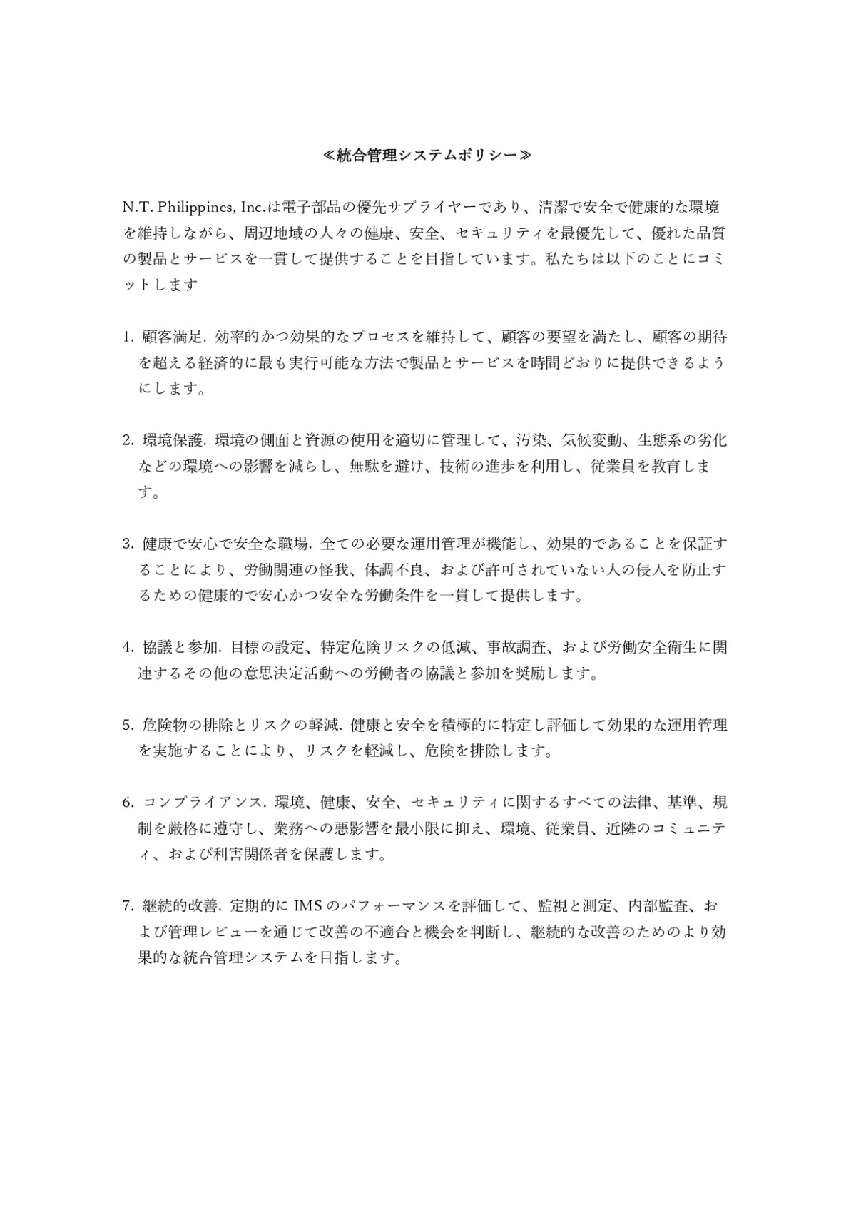 N.T.フィリピンズ社は1989年に南方物産フィリピンズ社として、主として日本の半導体メーカーへセラミックフィルターの組立ならびに検査業務を提供することを目的に創設されました。爾来お客様に最高の“満足”をご提供することを第一の目的に、主として電子部品産業のBPO分野でサポート業務を展開してまいりました。そして約35年を経過した今、新しい分野への挑戦も検討しています。