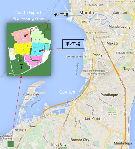 *カビテ経済特区の地図の中の青い部分(2箇所)が当社工場です。